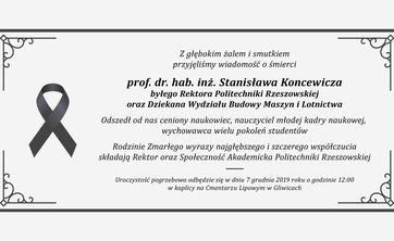 Rodzinie Zmarłego wyrazy najgłębszego i szczerego współczucia składają Rektor, Senat, Rada Uczelni oraz społeczność akademicka Politechniki Rzeszowskiej.