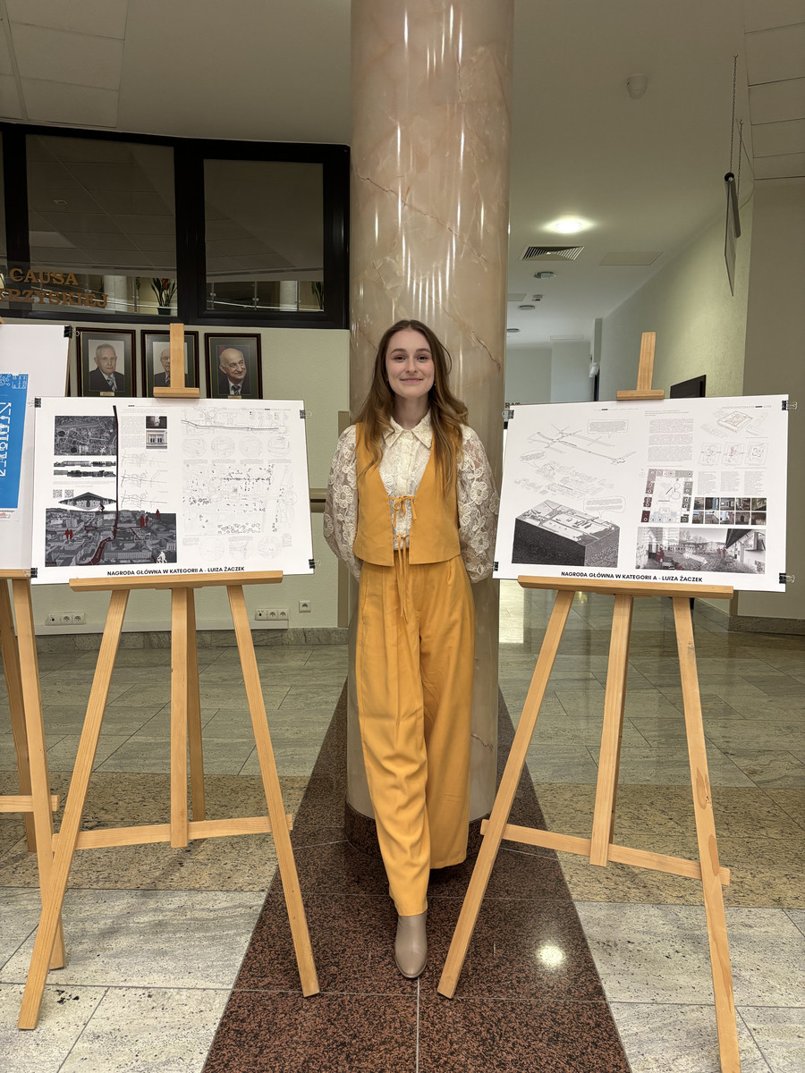 Luiza Żaczek, studentka kierunku architektura na Wydziale Budownictwa, Inżynierii Środowiska i Architektury Politechniki Rzeszowskiej została laureatką konkursów o zasięgu ogólnopolskim i regionalnym. Jej praca inżynierska pt. „Miasto dla ludzi. Implementacja wytycznych SUMP w projekcie rewitalizacji Śródmieścia Rzeszowa”, wykonana pod kierunkiem dr inż. arch. Magdaleny Szpytmy, zdobyła 1. miejsce w Ogólnopolskim Konkursie Studenckim „Przestrzeń dla wszystkich” oraz 2. miejsce w konkursie „Potencjał rozwojowy przestrzeni województwa podkarpackiego”. Wsparcie merytoryczne w zakresie projektowania nowoczesnego systemu transportu zbiorowego zapewnił dr inż. Mateusz Szarata.