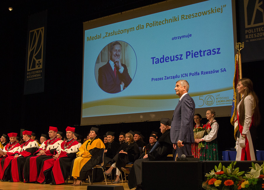 Podczas jubileuszu wręczono zaszczytne wyróżnienia: tytuł profesora honorowego Politechniki Rzeszowskiej oraz medal Zasłużonym dla Politechniki Rzeszowskiej. Tytuł profesora honorowego otrzymali zasłużeni dla wydziału i uczelni naukowcy: prof. dr hab. inż. Henryk Galina, prof. dr hab. inż. Zdzisławi S. Hippe, prof. dr hab. Stanisław Kopacz oraz dr hab. inż. Mieczysław Kucharski. Medal Zasłużonym dla Politechniki Rzeszowskiej otrzymał Tadeusz Pietrasz, prezes zarządu ICN Polfa Rzeszów S.A., absolwent Wydziału Chemicznego.